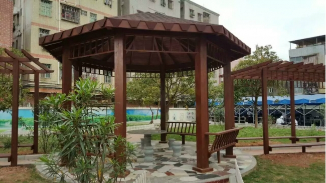防腐木涼亭不但在古色古香的古典園林中還是現(xiàn)代園林中都可見(jiàn)到不同規(guī)格的涼亭。有在巍峨的山崗上,有像荷葉一般漂浮在水上,使之山水涼亭互相烘托仿佛是一副生動(dòng)的墨水圖,涼亭不禁作歇腳休息、擋雨之所,還能眺望遠(yuǎn)處景色。防腐木涼亭建設(shè)在不同地點(diǎn),其所起作用也不一樣,可以說(shuō)防腐木涼亭實(shí)用又美觀。